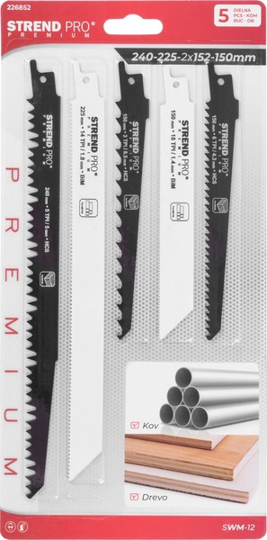 Praktická sada nožů pro pilu ocasku Strend Pro. Balení obsahuje 5 kusů ve velikostech : 240-225-2x152-150 mm