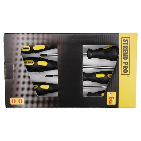 Sada šroubováků Strend Pro by neměla chybět ve vaší dílně. Sada obsahuje 6 šroubováků (plochých a křížových). Šroubováky jsou vyrobeny z chrom-vanadu a mají magnet. PL 3x75, 5x100, 8x150 PH 1x75, 2x100