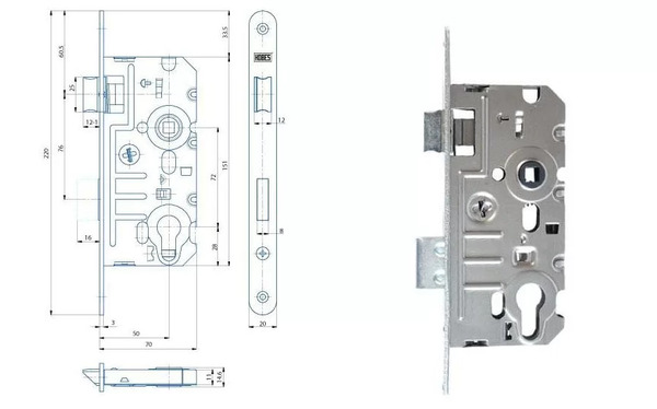 Zámek zadlabací 72/70 K 241 PBZn Pravý HOBES