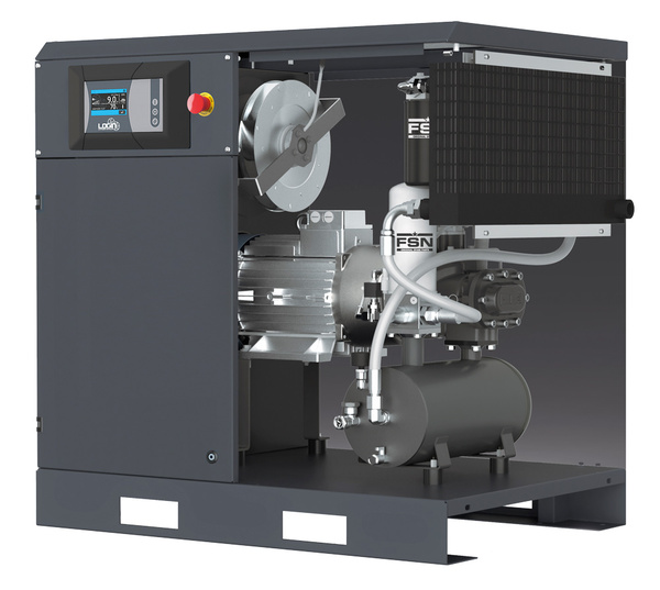 Přímo spojený koaxiální šroubový kompresor s tlakovou nádobou, kondenzační sušičkou a jemným filtrem. Maximálně efektivní, plně bezúdržbový a připravený k okamžitému nasazení.