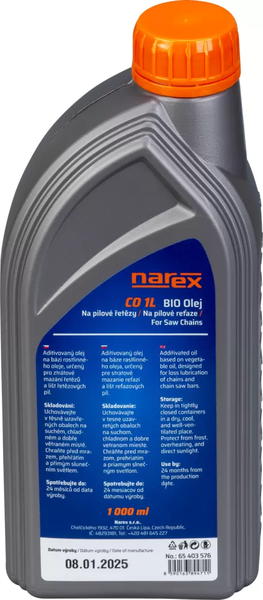 Olej na mazání řetězu typ CO 1 L ekologický, bio Narex Česká Lípa