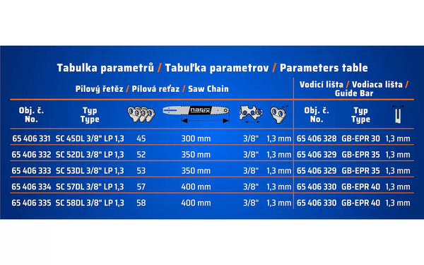 Řetěz - k vodicí liště 40 cm rozteč 3/8“, 57 článk Narex Česká Lípa