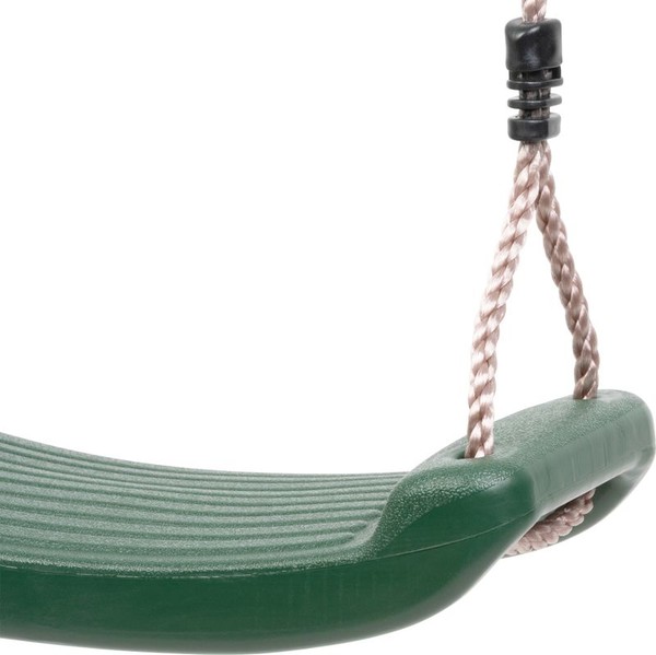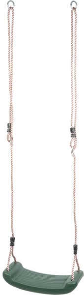 Dětská zelená plastová houpačka je praktická, snadno ji umístíte téměř kamkoli na zahradu. Houpačka nemá opěradlo ani přední ochranu proti pádu, takže musíte mít své dítě neustále na očích. Nosnost houpačky je 70 kg a její rozměry jsou 43 x 17 x 8,5 cm. Na obou stranách sedací části jsou 2 m dlouhá lana o průměru 10 mm. Je třeba je řádně přivázat k místu, kde chcete houpačku udržet. Dbejte na to, aby byla správně upevněna, nebyla příliš vysoko a nehrozilo nebezpečí úrazu.