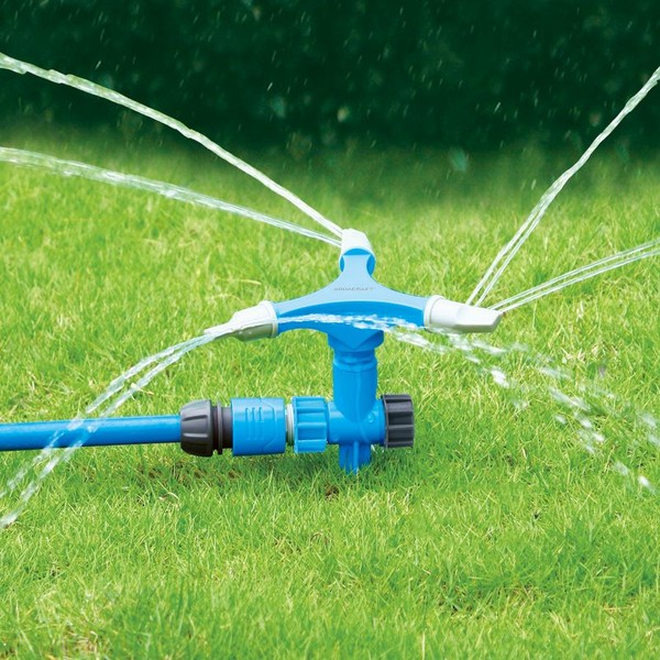 Z pevného plastu - 3 ramena zajišťují kruhové zavlažování - plastový trn pro bezpečné upevnění v trávníku
